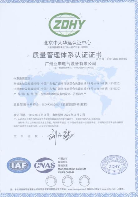 首頁 > 關于亞申 > 廣州亞申電氣設備有限公司ISO證書廣州亞申電氣設備有限公司ISO證書